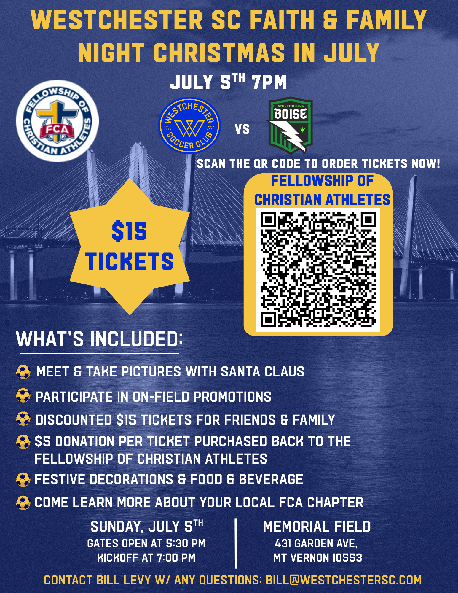 Join us for a fun night out with the family during the Westchester Soccer Club Faith & Family Night!